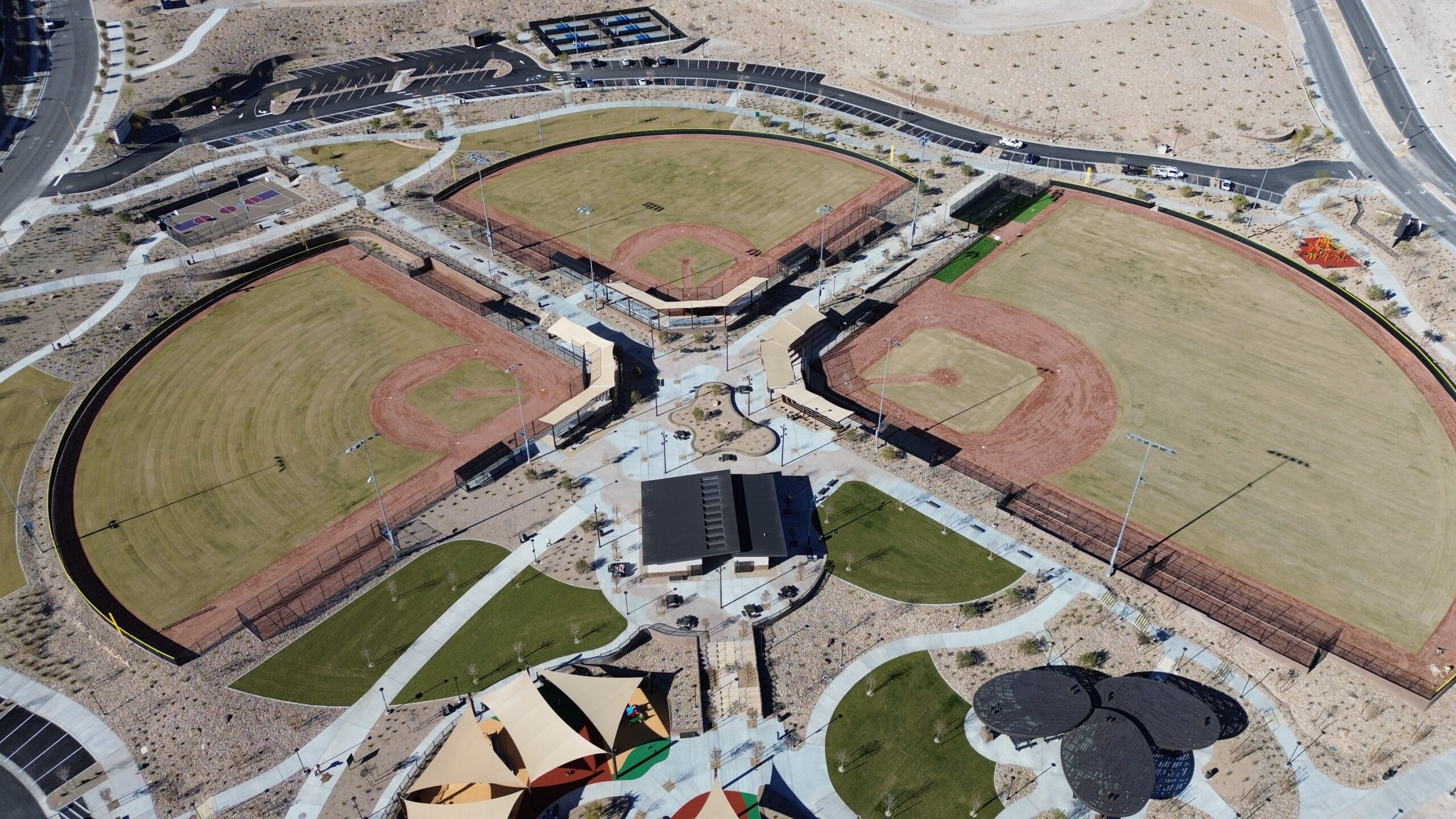 Grand ParkGrand Park once fully completed will be a 90-acre park located in the Grand Park Village in Summerlin West. The first phase of the park is called the Council Park which is on 21-acres and opened in December 2025. This portion of the park includes 3 lighted Baseball Fields with a concession building, 6 lighted Pickleball Courts, full sized lighted Basketball Court with 4 hoops, seasonal Splash Pad, Playground, a Climbing Play Structure, Shaded Picnic Areas with Grills, Adult Exercise Stations and Community Restrooms. The remaining two phases are in the planning stage, with additional details to be released as plans are finalized.