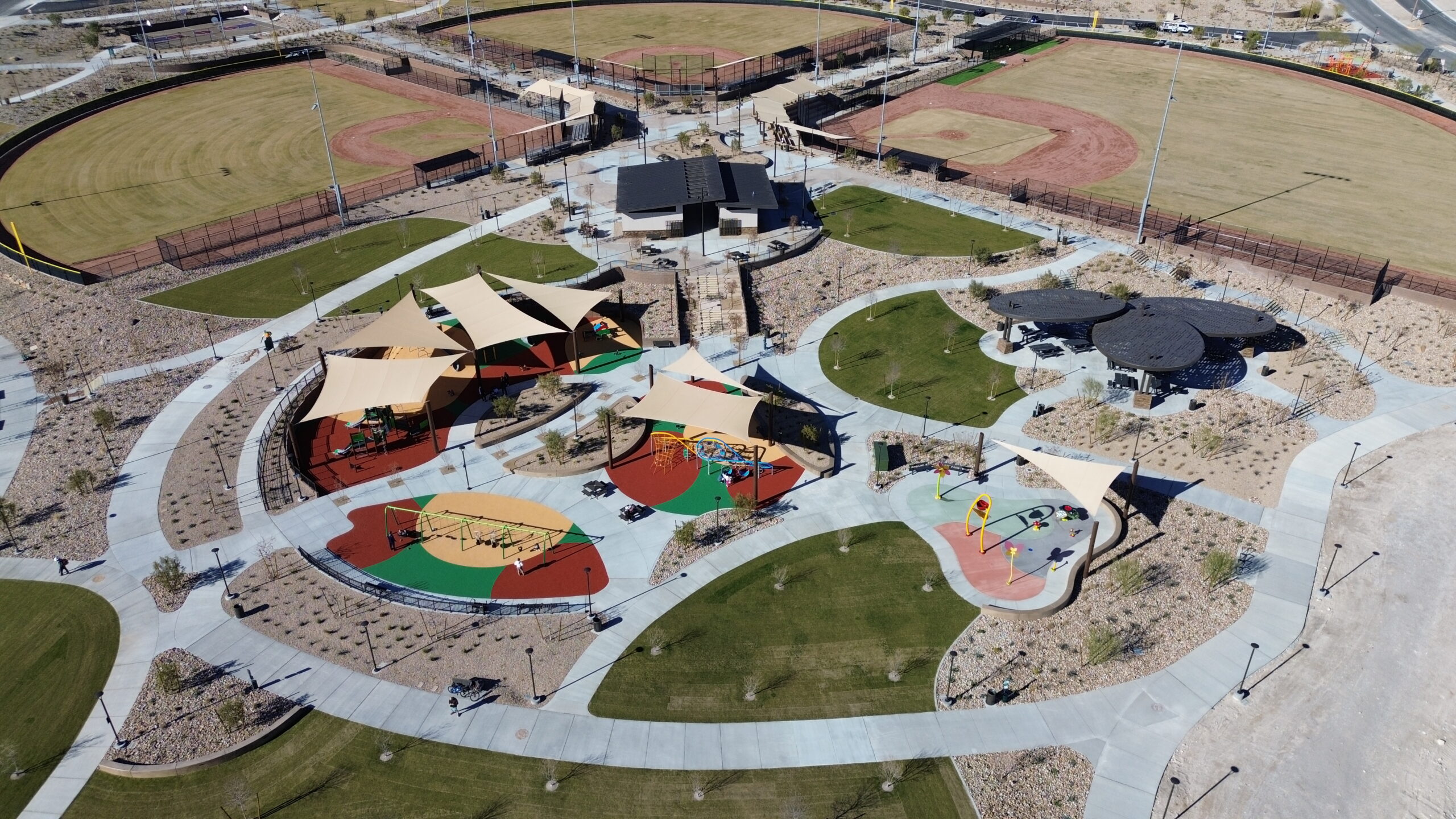 Winding trails will weave throughout the park, connecting various activity zones and shaded rest areas. True to Summerlin’s design philosophy, Grand Park will feature both active and passive recreation areas — spaces for competitive sports, family fun, and quiet reflection alike.