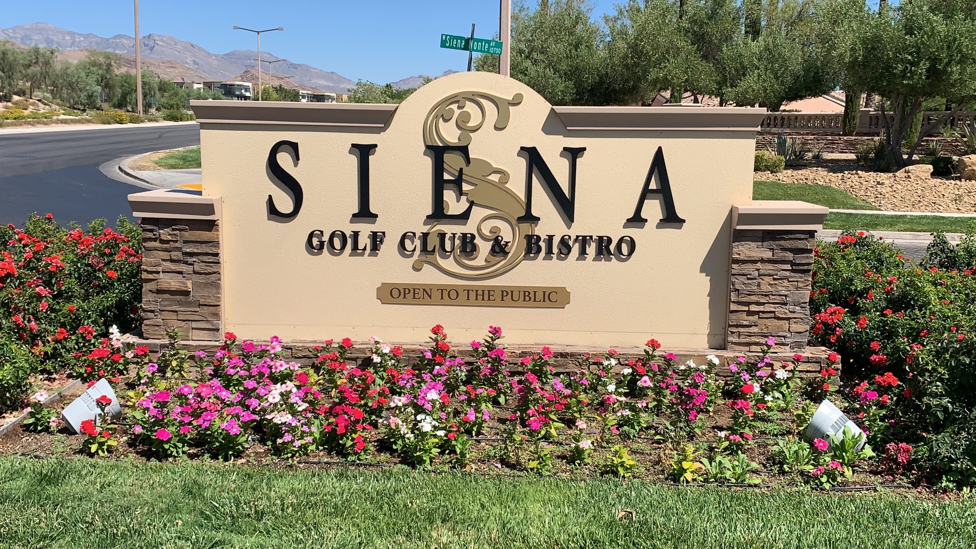The 13,500-square-foot Siena Golf Club features a full-service golf shop, locker rooms, multi-tiered practice facility and The Siena Bistro with a patio dining room overlooking Lake Siena. The elevated characteristic of the terrain provides panoramic views of the mountains and city lights.
