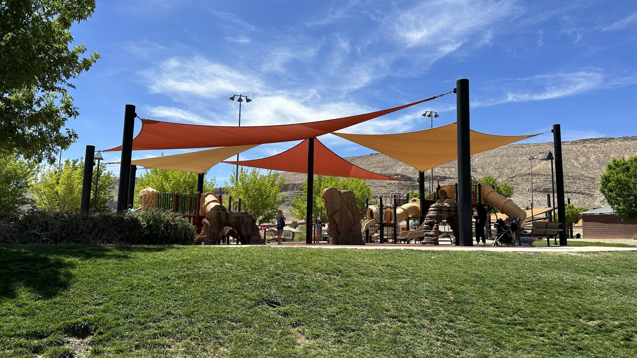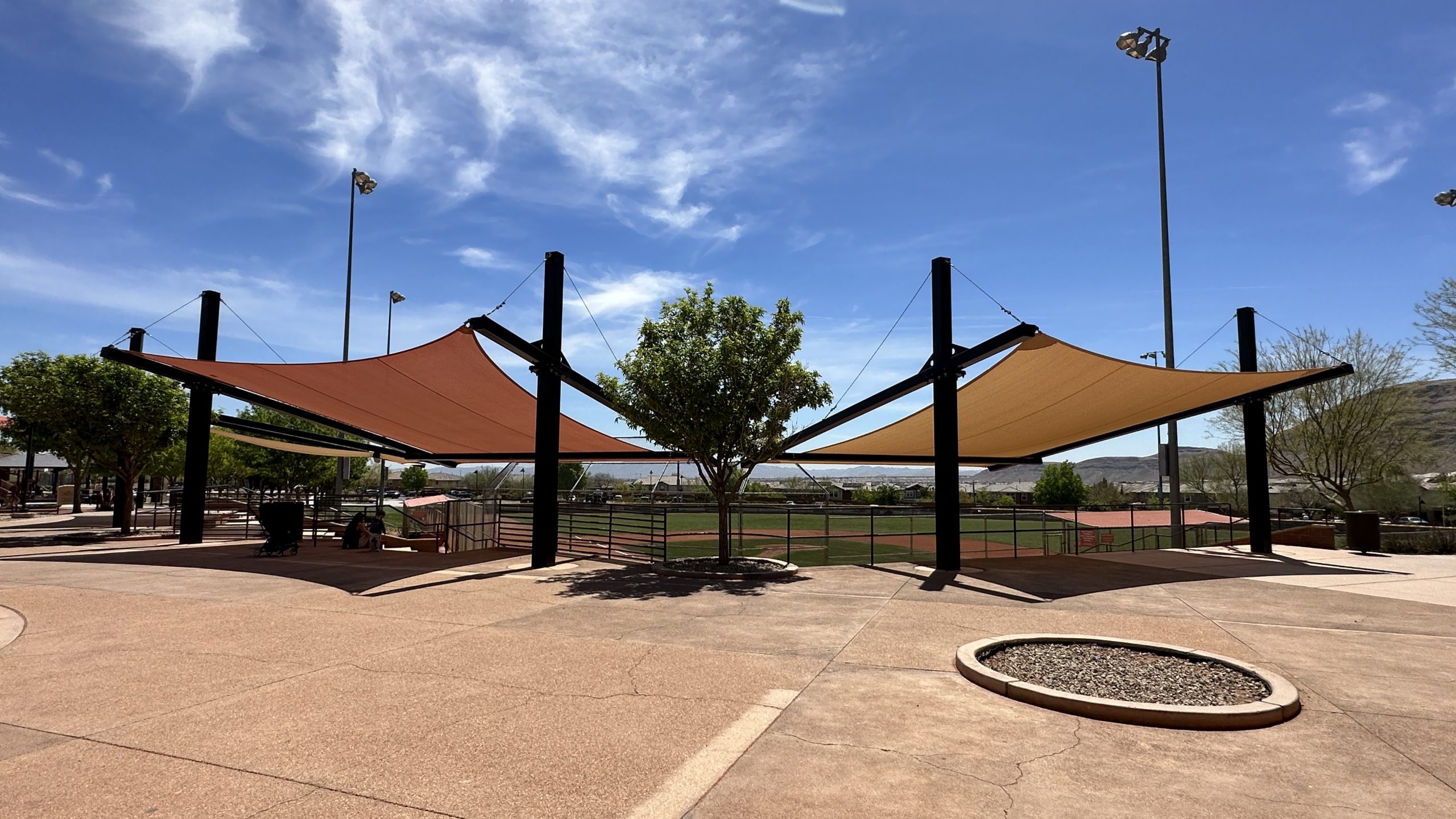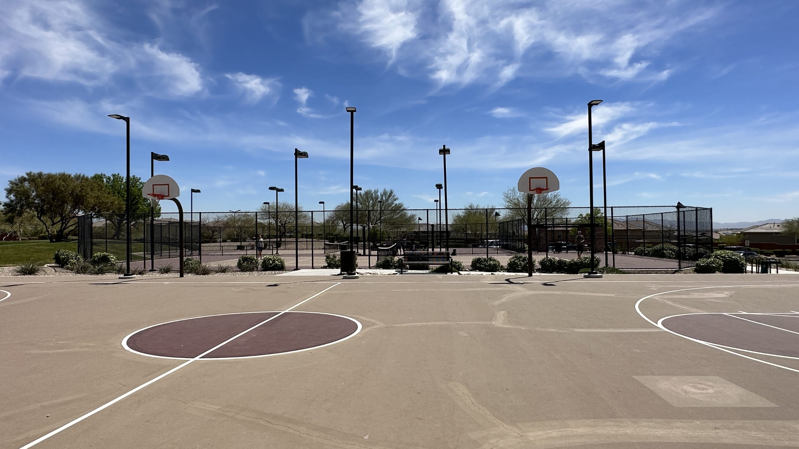 This park features beautiful mountain views with large open play areas, two lighted tennis courts, three lighted softball/baseball fields, concession building, a lighted full-sized basketball court with 6 hoops, tot lot, playground, BBQ area, covered picnic ramadas and community restrooms.
