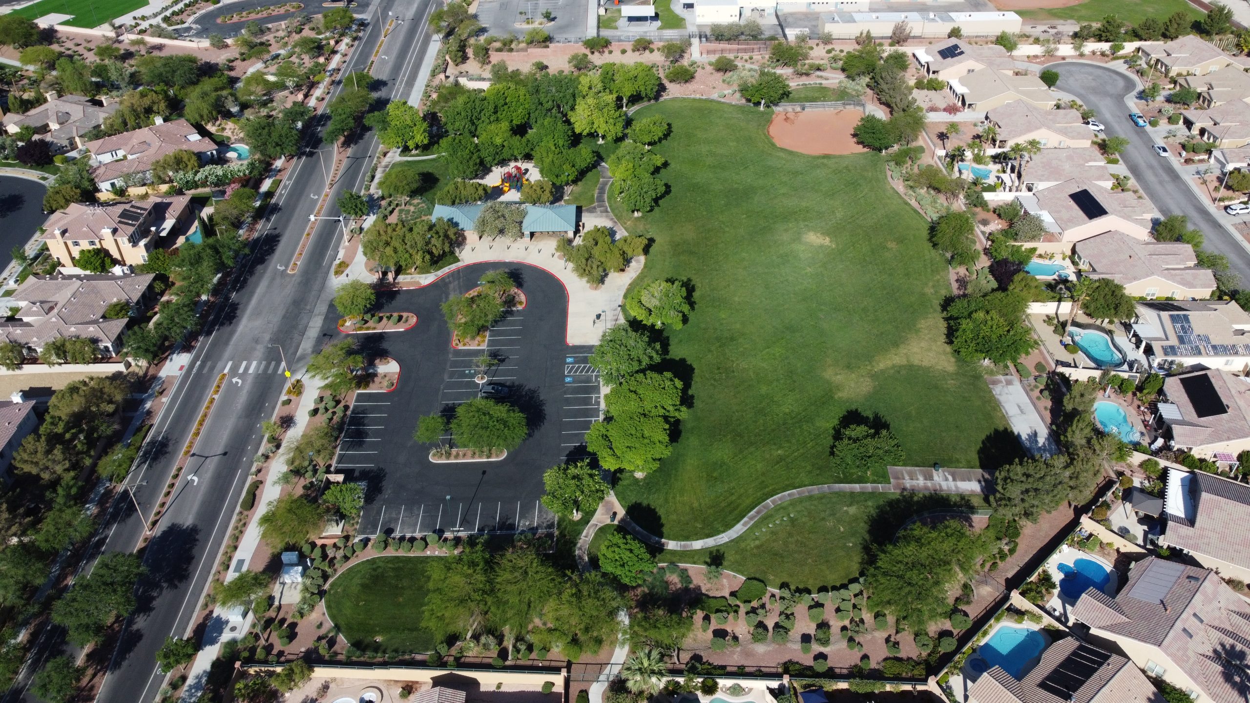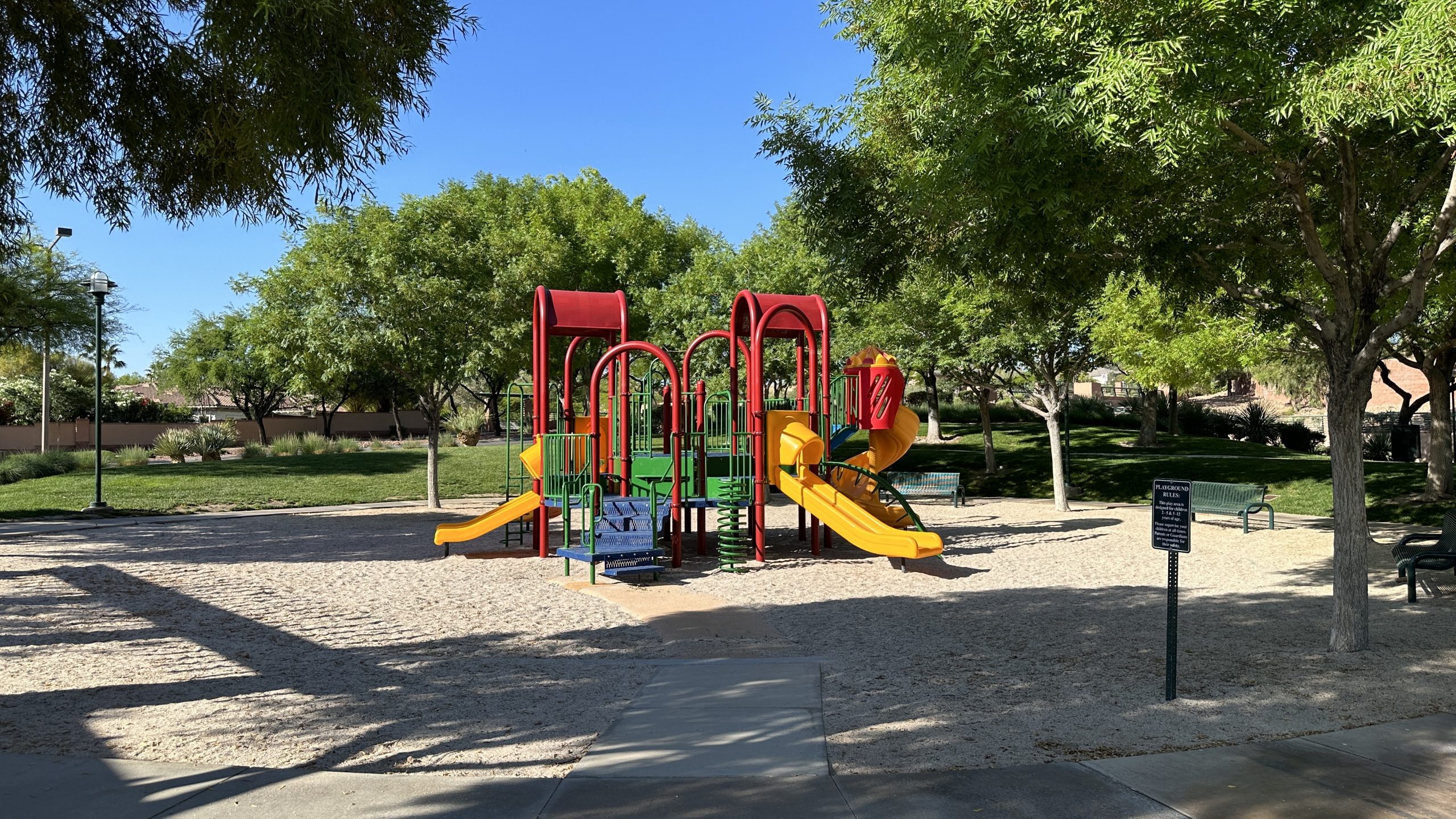 Tree Top Park is a 5.2-acre park located in The Arbors Village and is part of Summerlin West at 600 Sageberry Drive. This park features a T-ball field with bleachers, an open grass area, a picnic pavilion, children’s playground and community restrooms.